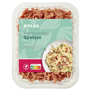 Veganistische spekjes op basis van soja-eiwit met toegevoegd ijzer en vitamine B12