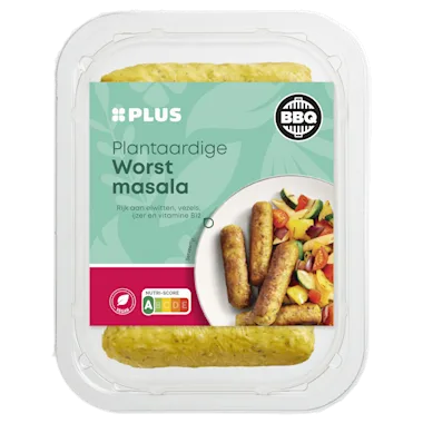Veganistische worst met masala-specerijen op basis van soja-eiwit met toegevoegd ijzer en vitamine B12