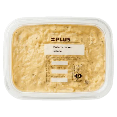 Ingrediënten :31% gegaard kippenvlees (99% kippenvlees*, zout, gemodificeerd aardappelzetmeel, rook), raapzaadolie, witte kool, water, augurk, suiker, VRIJE-UITLOOPKIPPENEI-EIGEEL, azijn, knoflook, peterselie, limoensap, maïszetmeel, zout, specerijen, MOSTERDZAAD, gemodificeerd maïszetmeel, gistextract, voedingszuur: E270/E330, chipotlepeper (jalapeñopeper, rook), conserveermiddel: E202/E211, verdikkingsmiddel: E415/E412, natuurlijk aroma, kleurstof: E160c, aroma.