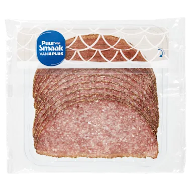 Ingrediënten :Varkensvlees*, varkensvet*, 5% peper, zout, varkensgelatine, dextrose, specerijen, maltodextrine, specerijextracten (peper, chili, koriander), antioxidant: E301, conserveermiddel: E202/E250, fermentatiecultuur, rook. Voor 100g eindproduct is 122g varkensvlees gebruikt. * = Beter Leven keurmerk 1 ster
