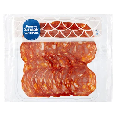 Ingrediënten :Varkensvlees, zout, paprika, erwteiwit, MELKPOEDER, dextrine, knoflook, dextrose, natriumcaseinaat (MELK), antioxidant: E301, conserveermiddel: E250. Voor 100g eindproduct is 142g varkensvlees gebruikt.