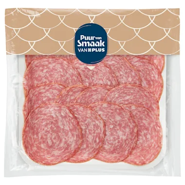 Varkensvlees*, zout, kruiden, specerijen, dextrose, glucosestroop, gehydrolyseerd plantaardig eiwit (koolzaad, maïs), antioxidant: E300, conserveermiddel: E250/E252, rode bietenpoeder, rook. Voor 100g eindproduct is 112g varkensvlees gebruikt. * = Beter Leven keurmerk 1 ster