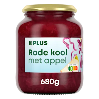 Ingrediënten :69% rode kool, 10% appel, water, suiker, azijn, gemodificeerd maïszetmeel, zout.