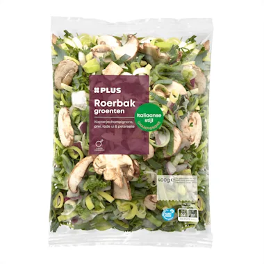 Verhit boter of olie in een wok of hapjespan. Roerbak de champignon roerbakgroenten gedurende 6 minuten.