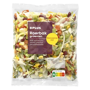 Mix van maïs, paprika, witte kool, sperziebonen, prei en
