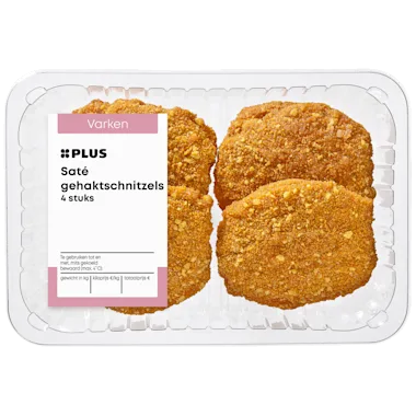 Gegaarde gehaktschnitzel gevuld met satésaus / Varkensvleesproduct, ontdooid