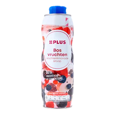 Vruchtenlimonadesiroop met appel, rozenbottel, framboos, braam en blauwe bes, met bosvruchtensmaak, met suiker en zoetstof