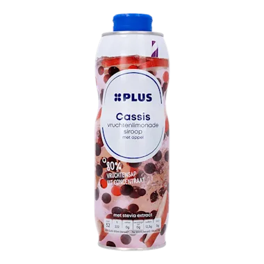Ingrediënten :80% vruchtensap uit concentraat (94% appel, 6% zwarte bes), suiker, zwarte wortelconcentraat, voedingszuur: citroenzuur, conserveermiddel: kaliumsorbaat/natriumbenzoaat, natuurlijk aroma, zoetstof: steviolglycosiden uit stevia.