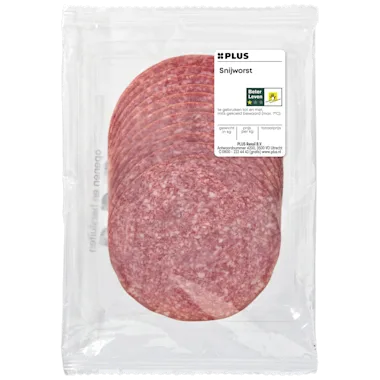 Voor de bereiding van 100g snijworst is 113g varkensvlees gebruikt.