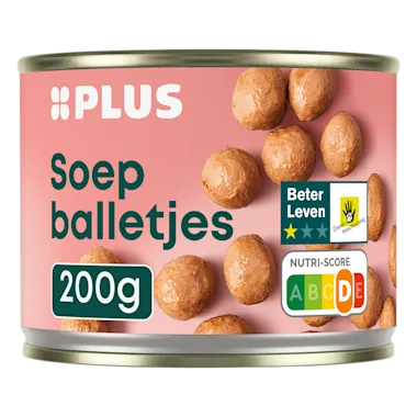 BETER LEVEN KEURMERK Het varkens- en kippenvlees vlees in deze Plus Soepballetjes is op diervriendelijkere wijze geproduceerd en daarom heeft de Dierenbescherming