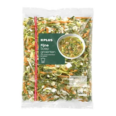 Ingrediënten :32% wortel, 27% prei, 21% bloemkool, 20% SELDERIJ
