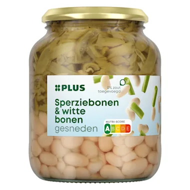 37% sperziebonen gesneden, water, 31% witte bonen, antioxidant: E223 (SULFIET)