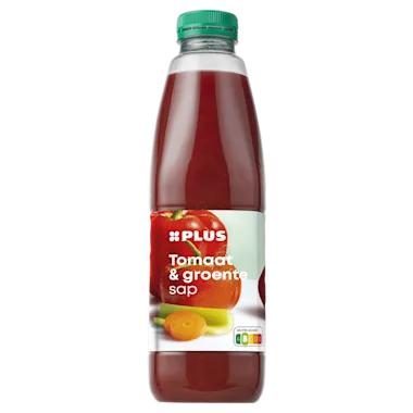 99% groente- en vruchtensap uit concentraat en puree (82% tomaat, 11% SELDERIJ, 2% wortel, 1,8% paprika, 1,5% rode biet, 1,0% spinazie, 0,5% citroen), zeezout, antioxidant: ascorbinezuur, peterselie, lavaswortel, basilicum, uienolie.