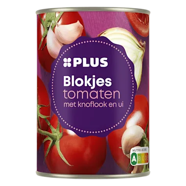 Tomatenblokjes in tomatensap met ui en knoflook