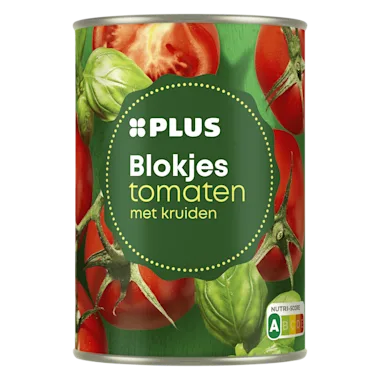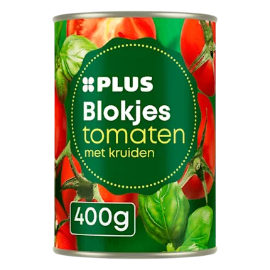 Tomatenblokjes in tomatensap met kruiden