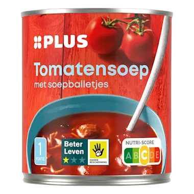 Ingrediënten :71% tomaat (water, tomatenblokjes, tomatenpuree, tomatensap), water, 9% vermicelli gekookt (water, TARWEGRIESMEEL, SCHARRELKIPPENEI-EIWIT), 5% soepballetjes (varkensvlees*, rundvlees*, varkenseiwit, TARWEZETMEEL, TARWEVEZEL, zout, specerijen, natuurlijk aroma), suiker, 1,3% ui, gemodificeerd maïszetmeel, 0,6% prei, raapzaadolie, zout, natuurlijk aroma (bevat TARWE), citroensapconcentraat, raapzaadeiwithydrolysaat, zuurteregelaar: melkzuur/ citroenzuur, laurier, specerijen.