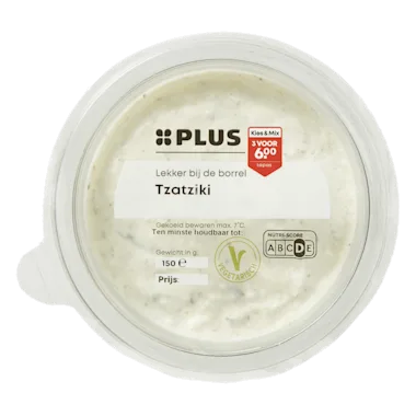 Ingrediënten :41% melkproduct (volle MELK, gemodificeerd maïszetmeel, verdikkingsmiddel: E440, melkzuurculturen), 33% roomkaas (magere MELK, room (MELK), melkzuurculturen), 21% komkommer, raapzaadolie, suiker, azijn, knoflook, gemodificeerd maïszetmeel, zout, specerijen, dille, steranijsextract, dille-extract, laurierextract, conserveermiddel: E202/E211, voedingszuur: E330, stabilisator: E412.