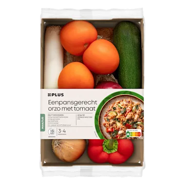 Ingrediënten :tomaat, courgette, 17% orzo (DURUMTARWEGRIESMEEL), rode paprika, ui, rode ui, prei, tomatenpuree (tomatenpuree, zout), mix met kruiden (specerijen (uienpoeder, knoflookpoeder, zwarte peper, chilipeper), kruiden (rozemarijn, oregano, tijm, peterselie), zout, uiengranulaat, knoflookgranulaat, prei, koolzaadolie, antiklontermiddel: E504/E535, voedingszuur: citroenzuur).