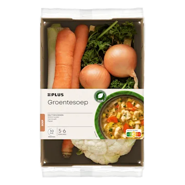 Groentepakket voor de bereiding van groentesoep met groentebouillonblokjes (30g)