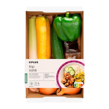 Groentepakket voor de bereiding van kipsaté met een zakje pindasaus (150 g) en een zakje nasi goreng boemboe (85 g)