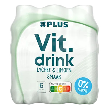 Frisdrank met limoen-lycheesmaak, met toegevoegde vitamines, met zoetstoffen