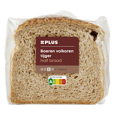Ingrediënten :VOLKORENTARWEMEEL, water, tijgerdecoratie (water, rijstebloem, TARWEBLOEM, dextrose, zout, gist), TARWEGLUTEN, bakkersgist, bakkerszout, emulgator: E482/ E471, veldbonenmeel, volkoren moutmeel (GERST, TARWE), suiker, gefermenteerd VOLKORENTARWEMEEL, geïnactiveerd VOLKORENTARWEDESEMPOEDER, enzym (TARWE), meelverbeteraar: E300, raapzaadolie.