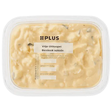 Ingrediënten :64% VRIJE-UITLOOPKIPPENEI*, raapzaadolie, water, suiker, 1,6% VRIJE-UITLOOPKIPPENEI-EIGEEL, zout, azijn, aardappelzetmeel, maïszetmeel, gistextract, gemodificeerd maïszetmeel, 0,1% bieslook, conserveermiddel: E202/E211/E260, natuurlijk wortel aroma, verdikkingsmiddel: E415, voedingszuur: E330/E331, specerijen, MOSTERDZAAD.