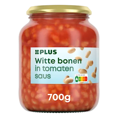 Ingrediënten :60% witte bonen, 40% tomatensaus (water, 13% dubbel geconcentreerde tomatenpuree, suiker, zout, gemodificeerd maïszetmeel, natuurazijn, uienpoeder, gehydrolyseerd plantaardig eiwit, paprikapoeder, extracten van kruiden en specerijen (basilicum, laurier, paprika, kaneel, kruidnagel, koriander, knoflook, gember, nootmuskaat, ui, piment)).