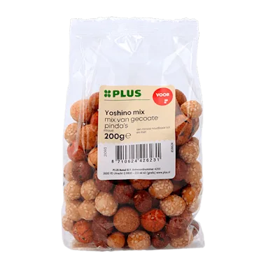 Ingrediënten :TARWEBLOEM, 24% PINDA'S, suiker, gemodificeerd zetmeel (maïs, aardappel), glucosestroop, SESAMZAAD, aardappelzetmeel, SOJASAUS (water, SOJABONEN, TARWE, zout), maltodextrine, rijsmiddel: E503, zout, zeewier, gistextract, kleurstof: karamel/paprika-extract.