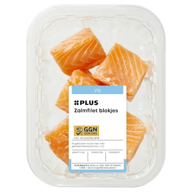 Bereidingswijze: In de pan/wok: breng de zalm blokjes op smaak met peper en zout. Verhit boter en/of (olijf)olie in een pan en roerbak ca. 5 minuten.