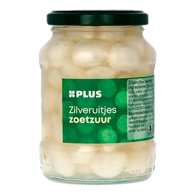 Ingrediënten :zilveruien, water, azijn, suiker, zout, aroma's, conserveermiddel: E223 (SULFIET).