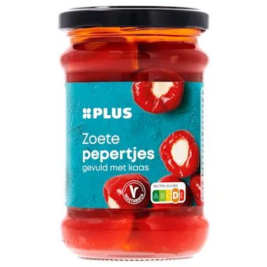 Plus Zoete pepertjes gevuld met kaas hebben een heerlijke combinatie van de pittige zoete smaak van het pepertjes en de romige, ietwat zilte smaak van de kaas.