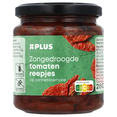 Gemarineerde zongedroogde tomaatreepjes op zonnebloemolie