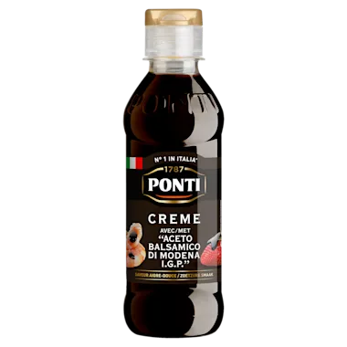 Ingrediënten: Gekookte druivenmost*, Balsamico Azijn uit Modena* 38% (wijnazijn, geconcentreerde druivenmost, gekookte druivenmost, kleurstof: karamel E 150d), wijnazijn*, kleurstof: karamel E 150d*, gemodificeerd maïszetmeel, verdikkingsmiddel: xanthaangom, *Bevat SULFIETEN.