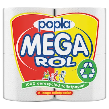 Popla megarol is zacht en sterk toiletpapier en is gemaakt van 100% hoogwaardig kringlooppapier. Het is goed afbreekbaar in het toilet en in septische putten. De verpakking is PVC vrij en recyclebaar.