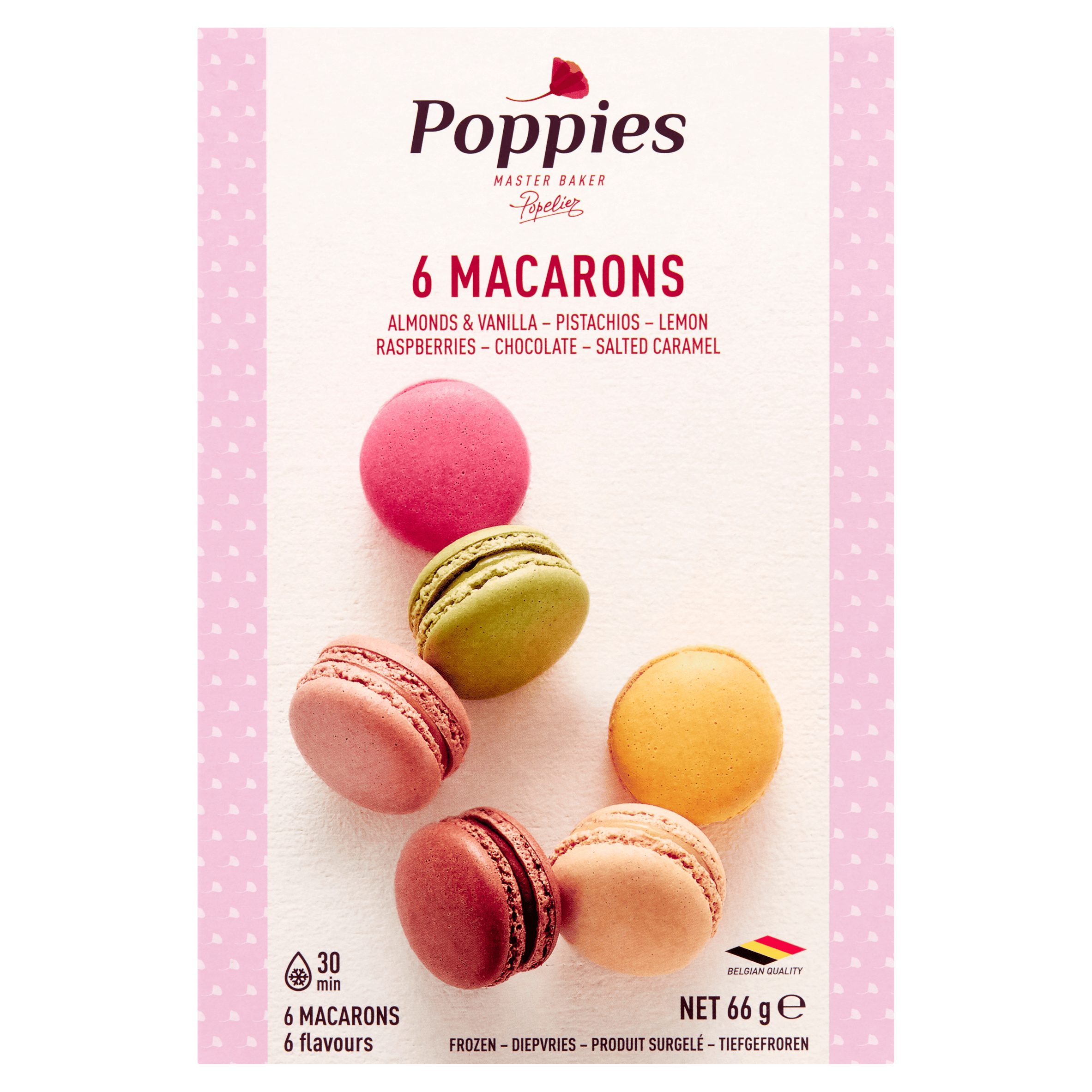 Neem het gewenste aantal macarons uit de verpakking en schik ze op een serveerschotel. Laat ze gedurende ca. 30 minuten ontdooien op kamertemperatuur of, voor een optimale smaaksensatie, gedurende ca. 45 minuten in de koelkast en daarna nog 20 minuten op kamertemperatuur.