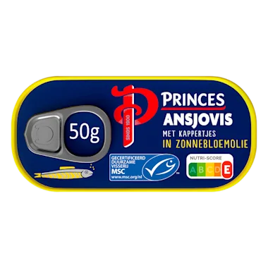 Ingrediënten: Gezouten ansjoVISfilets (ansjoVIS, zout) (50%), zonnebloemolie, kappertjes (kappertjes, zout) (14%)