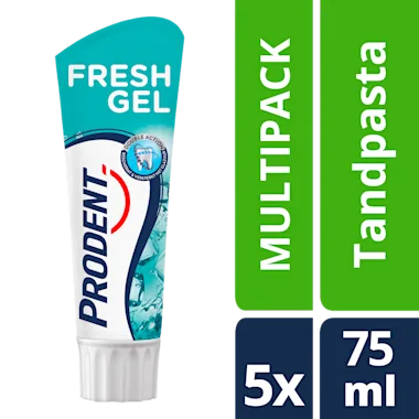 Prodent Fresh Gel Tandpasta heeft een frisse muntsmaak voor een extra frisse adem. Prodent tandpasta biedt een viervoudige bescherming om je tanden sterk en gezond te houden. De tandpasta beschermt je tanden tegen gaatjes en verborgen suiker(zuren), versterkt het tandglazuur en zorgt voor langdurige frisheid. Tandplakbacteriën zetten suikers en zetmeel uit onze dagelijkse voeding om in zuren die het tandglazuur kunnen aantasten. Zo kunnen gaatjes in het glazuur ontstaan. Daarnaast kunnen de zuren in voedingsmiddelen met een lage pH, zoals fruit en frisdrank, slijtage aan het glazuur veroorzaken. Dit wordt tanderosie genoemd. Deze tandpasta helpt je gebit te beschermen tegen tanderosie en versterkt het glazuur door het harder te maken. Hierdoor is je gebit beter bestand tegen gaatjes. Gezonde tanden en een goede mondverzorging zijn een essentieel onderdeel van je welzijn en gezondheid.