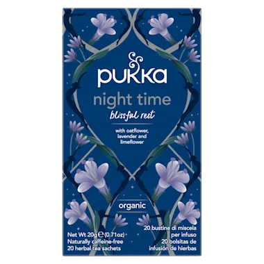 Ingrediënten: : bloeiende toppen van haver, kamillebloem (18,1%), zoethoutwortel, lavendelbloem (14%), lindebloesem, tulsi-blad, valeriaanwortel (4,9%).