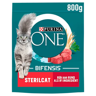 Purina ONE Sterilcat is qua voedingswaarde afgestemd op gecastreerde/gesteriliseerde katten
