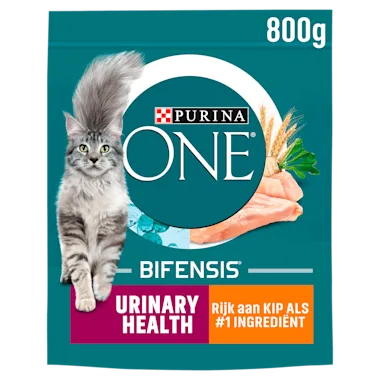 PURINA ONE® Urinary Health kattenvoer Rijk aan Kip is speciaal afgestemd om gezonde urinewegen te helpen ondersteunen. PURINA ONE® kattenvoer is bereid met hoogwaardige ingrediënten, zoals kip als nummer één ingrediënt, en cichorei, een prebioticum dat de balans van het darmmicrobioom verbetert. Het microbioom is een ecosysteem met biljoenen micro-organismen die in de darm leven en uniek zijn voor elke kat. De balans van micro-organismen is belangrijk om een positief effect te hebben op de spijsvertering, het afweersysteem en het algehele welzijn van jouw kat. Ontwikkeld door Purina's dierenartsen en voedingsdeskundigen, bevat PURINA ONE® BIFENSIS® een nutritionele formule met een heilzame functionele bacterie: Lactobacillus, waarvan wetenschappelijk is bewezen dat dit het immuunsysteem van jouw kat van binnenuit versterkt en een gezond darmmicrobioom helpt beschermen. PURINA ONE® BIFENSIS® is verkrijgbaar in een breed assortiment van smaakvolle, knapperige kattenbrokjes en natvoer met hoogwaardige ingrediënten, afgestemd op de levensstijl en levensfase van jouw kat. PURINA ONE® Zichtbare gezondheid voor vandaag en morgen.