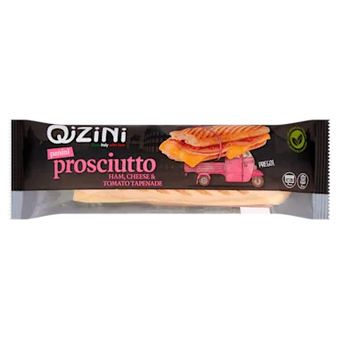 QiZiNi Panini Prosciutto is een echte topper, belegd met lekkere ham, smakelijke Gouda kaas en Italiaans gekruide tomaten-tapenade. De combinatie van ham, Gouda kaas, tomaten-tapenade en Italiaanse kruiden zorgt voor een heerlijke smaak. De knapperige panini maakt het af. QiZiNi heeft de Panini Prosciutto Ready to Heat gemaakt. Je kunt ‘m dus zo in de oven schuiven en even later heb je een heerlijke panini. Voor een hartig ontbijt is een Panini Prosciutto een lekkere start van je dag. De ham en kaas geven genoeg energie om er een hele tijd tegen te kunnen. Als lunch of tussendoortje is de Panini Prosciutto ook een heerlijk idee. Je kunt deze panini zelfs als hapje serveren, bijvoorbeeld als je bezoek krijgt. Verwarm de panini een kwartiertje in de oven, snijd ‘m in kleinere stukken en presenteer deze op een mooie schaal. Jij en je gasten zullen deze lekkere hapjes zeker waarderen! Geniet ervan!