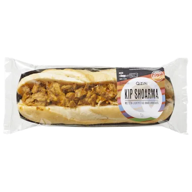 INGREDIËNTEN: 57% witte tarwe baguette (TARWEBLOEM, water, zonnebloemolie, WEIPOEDER, gist, ROGGEZUURDEEG, TARWEMOUTBLOEM, gejodeerd zout [zout, kaliumjodide], suiker, raapzaadolie, antioxidant: ascorbinezuur), 29% gegaard en in kebab stijl gekruid kippendijvlees (89% kippendijvlees, water, maiszetmeel, brandewijnazijn, specerijen, dextrose, zout, witte wijnazijn, antioxidant: ascorbinezuur), 11% sla dressing (raapzaadolie, water, EIGEEL, suiker, maiszetmeel, brandewijnazijn, mosterd [water, MOSTERDZAAD, brandewijnazijn, zout, suiker, specerijen], zout, verdikkingsmiddel: guarpitmeel, specerijen), 3% tomaat kruidenspread (water, raapzaadolie, 14,7% tomatenpuree, suiker, brandewijnazijn, EIGEEL, specerijen, maiszetmeel, zout, gemodificeerd maiszetmeel, 1,3% basilicum, 0,9% oregano, verdikkingsmiddel: xanthaangom), natuurazijn, knoflookpoeder, zout, conserveermiddel: kaliumsorbaat, conserveermiddel: natriumbenzoaat.