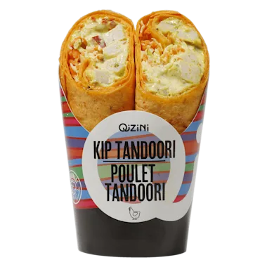 Ingrediënten: 49% tomaten wrap (TARWEBLOEM, water, raapzaadolie, rijsmiddel: difosfaten/natriumcarbonaten, 0,8% tomaatpoeder, dextrose, zout, voedingszuur: appelzuur, kruiden, specerijen, gedroogde groenten [ui, knoflook], meelverbeteraar: l-cysteïne), 15% geroosterde en vloeibaar gekruide kippenborstfilet blokjes (92% kippenborstfilet, water, aardappelzetmeel, brandewijnazijn, zout, dextrose, witte wijnazijn), 11% mayonaise (76% raapzaadolie, water, 6% EIGEEL*, brandewijnazijn, zout, mosterd [water, MOSTERDZAAD, brandewijnazijn, zout, suiker, specerijen], suiker, voedingszuur: citroenzuur, verdikkingsmiddel: xanthaangom, natuurlijk aroma [bevat: MOSTERD]), 11% spitskool, 9% gegaarde rode paprika (rode paprika, suiker, zout, zuurteregelaar: azijnzuur), 3% water, natuurazijn, 0.5% tandoori kruidenmix (zout, specerijen [korianderzaad, uienpoeder, kurkuma, paprikapoeder, MOSTERDPOEDER, knoflookpoeder, komijn, witte peper, fenegriekzaad, karwei, gember, laos, chilipeper, kaneel], gedroogde glucosestroop, kruiden [peterselie, sereh, marjolein, laurierblad], zonnebloemolie), gemodificeerd aardappelzetmeel, raapzaadolie, verdikkingsmiddel: xanthaangom, conserveermiddel: kaliumsorbaat/natriumbenzoaat. *scharreleieren
