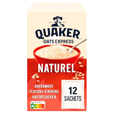 Met elke kom QUAKER Oats Express® Natural geniet je van heerlijke 100% VOLKOREN havermout. Quaker Oats Express® Naturel bevat geen toegevoegde suikers.** **Bevat van nature aanwezige suikers. Wist je dat havermout helpt het cholesterol te verlagen?*** ***Een portie bevat 33% van de 3 gram beta-glucanen vezels, die dagelijks nodig is om het cholesterolgehalte te verlagen.