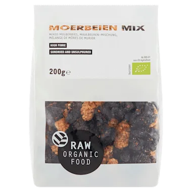 moerbeien zwart* 62%, moerbeien wit* 38%, *=biologisch