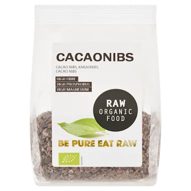 Ingrediënten: Cacao nibs**, **=biologisch