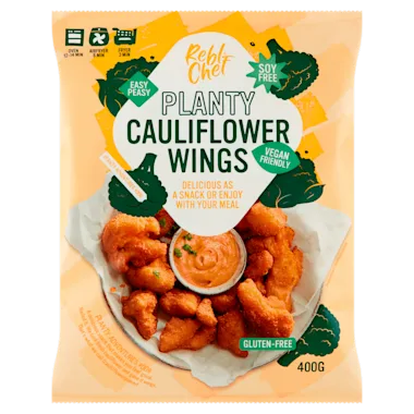 ingrediënten: bloemkool 65% (eu), koolzaadolie, water, paneermeel (rijstebloem, gemalen kikkererwten, zout, dextrose), maïszetmeel, gejodeerd zout, gerookt paprikapoeder (paprikapoeder, rook), cayennepeper, verdikkingsmiddel (xanthaangom)