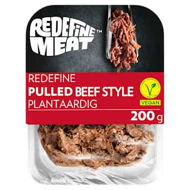 Met Redefine Pulled Beef kunnen vleesliefhebbers, vegetariërs en veganisten van een heerlijke hartige maaltijd genieten zonder te hoeven inleveren op smaak. De Redefine Pulled Beef is 100% plantaardig, veganistisch, eiwitrijk en is halal.