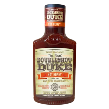 De Doubleshot Duke is een zoet-pittige barbecuesaus met honing en chili. Heerlijk bij kip, ribs en veggies.